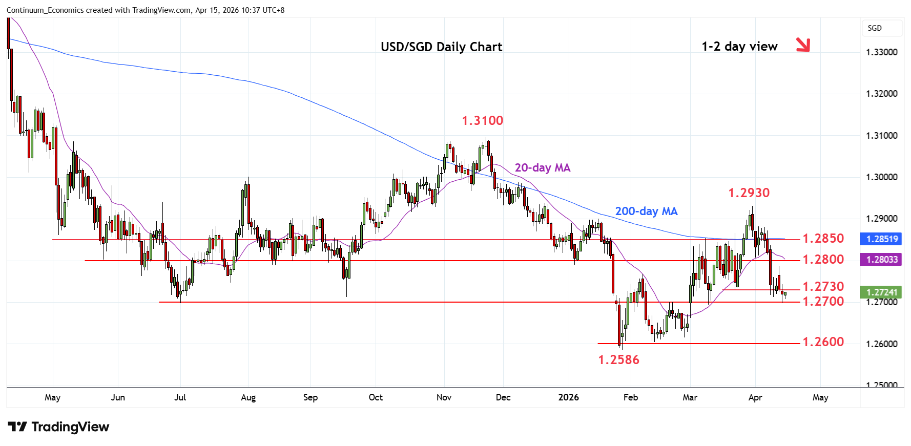 Chart USD/SGD Update: Consolidating at 1.2700 support