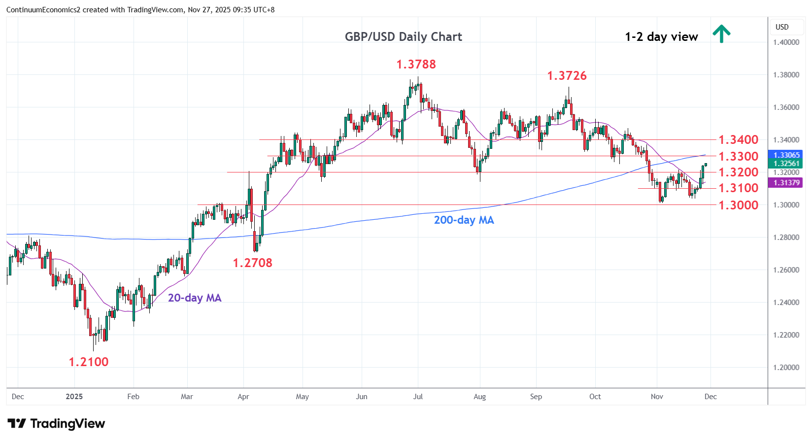 | R1 | 1.3300/23 | ** | congestion, Sep low | S4 | 1.3010 | ** | 4 Nov low |