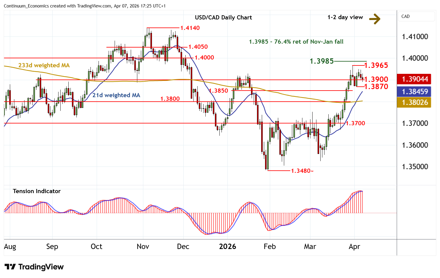 | R1 | 1.3965 | * | 31 Mar YTD high | S4 | 1.3800 | * | congestion |