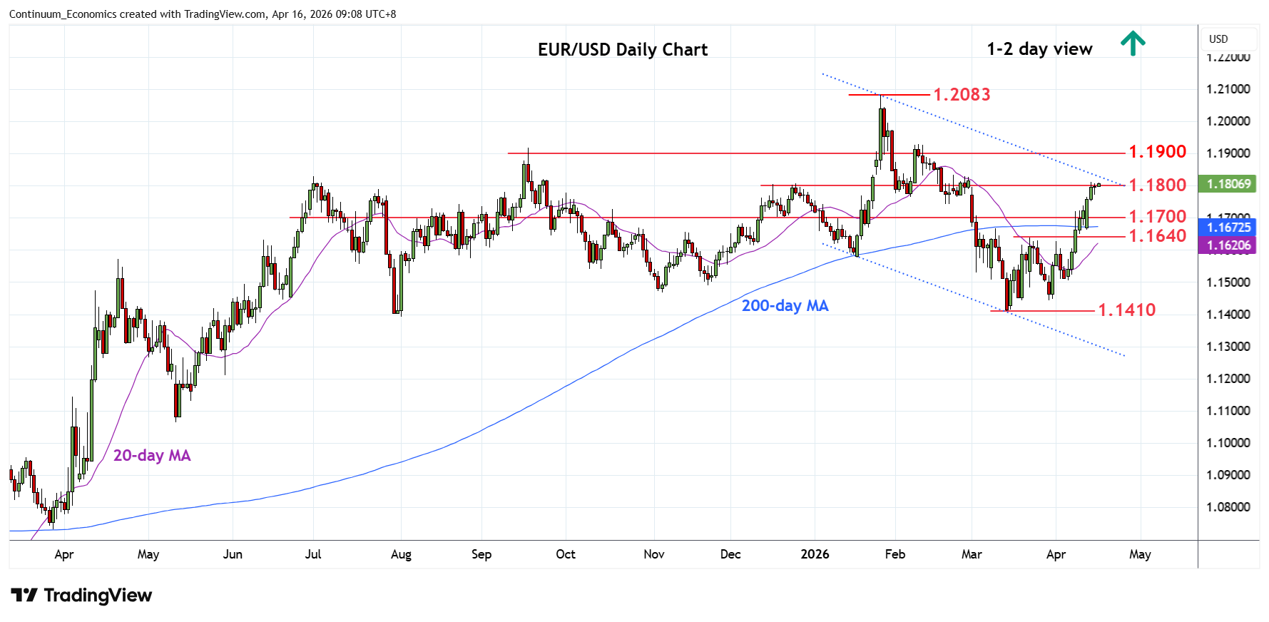 Chart EUR/USD Update: Pressuring 1.1800/25 resistance