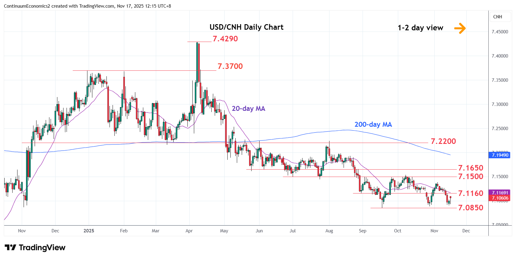 Chart USD/CNH Update: Turned up in consolidation above 7.0885/7.0850 lows