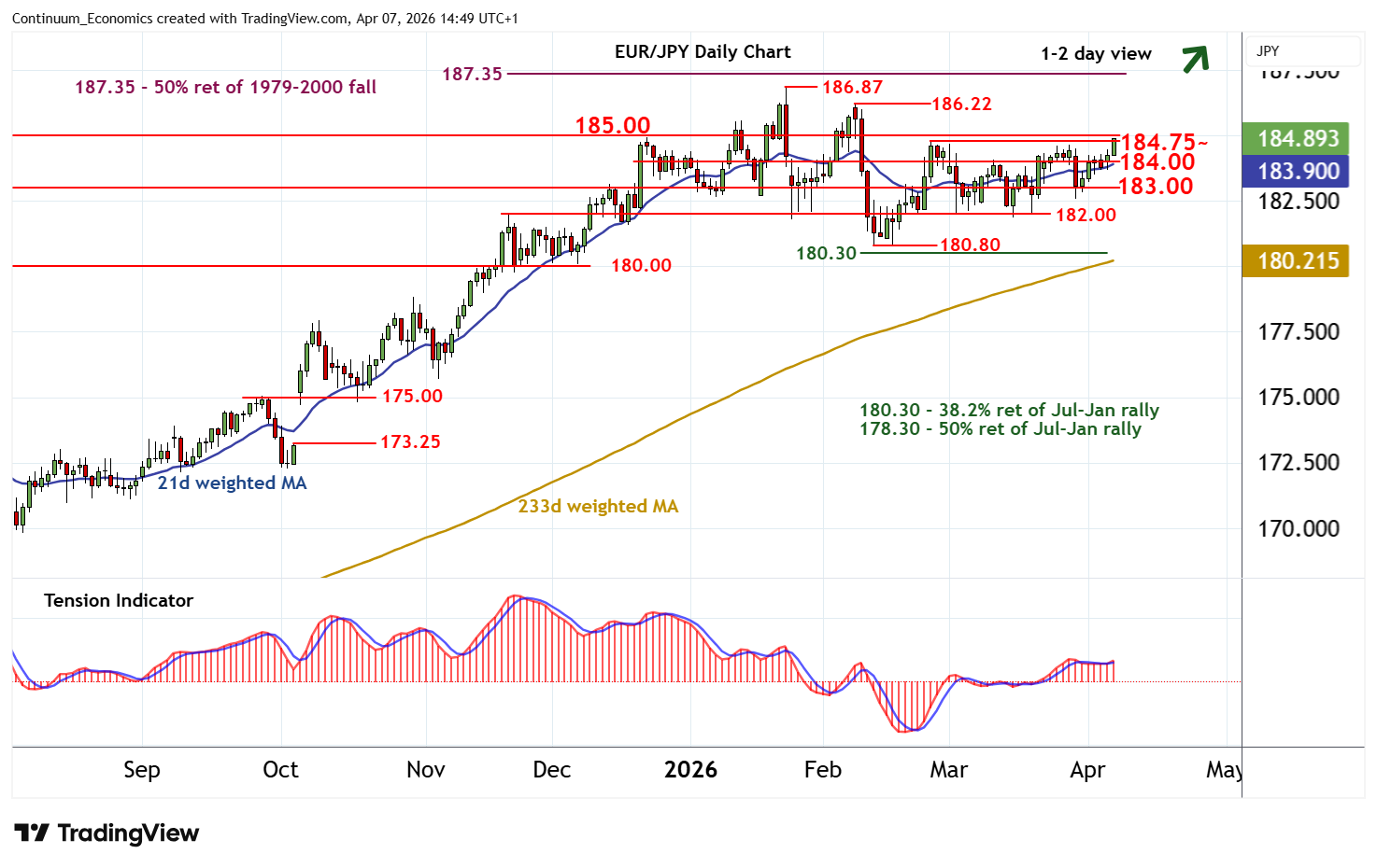 | R1 | 184.75~ | * | 25 Feb (w) high | S4 | 180.80/00 | ** | 12 Feb YTD low; cong |