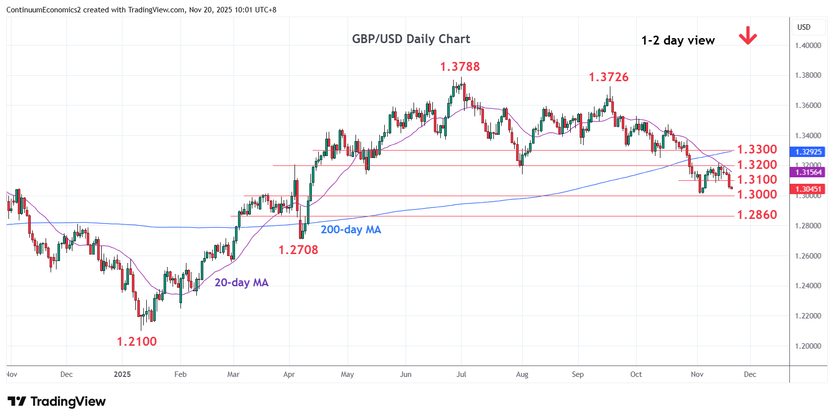Chart GBP/USD Update: Extending losses, 1.3010 low at risk