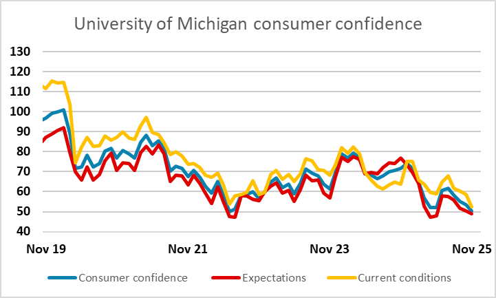 EUR, JPY flows: USD lower after weak U Mich sentiment