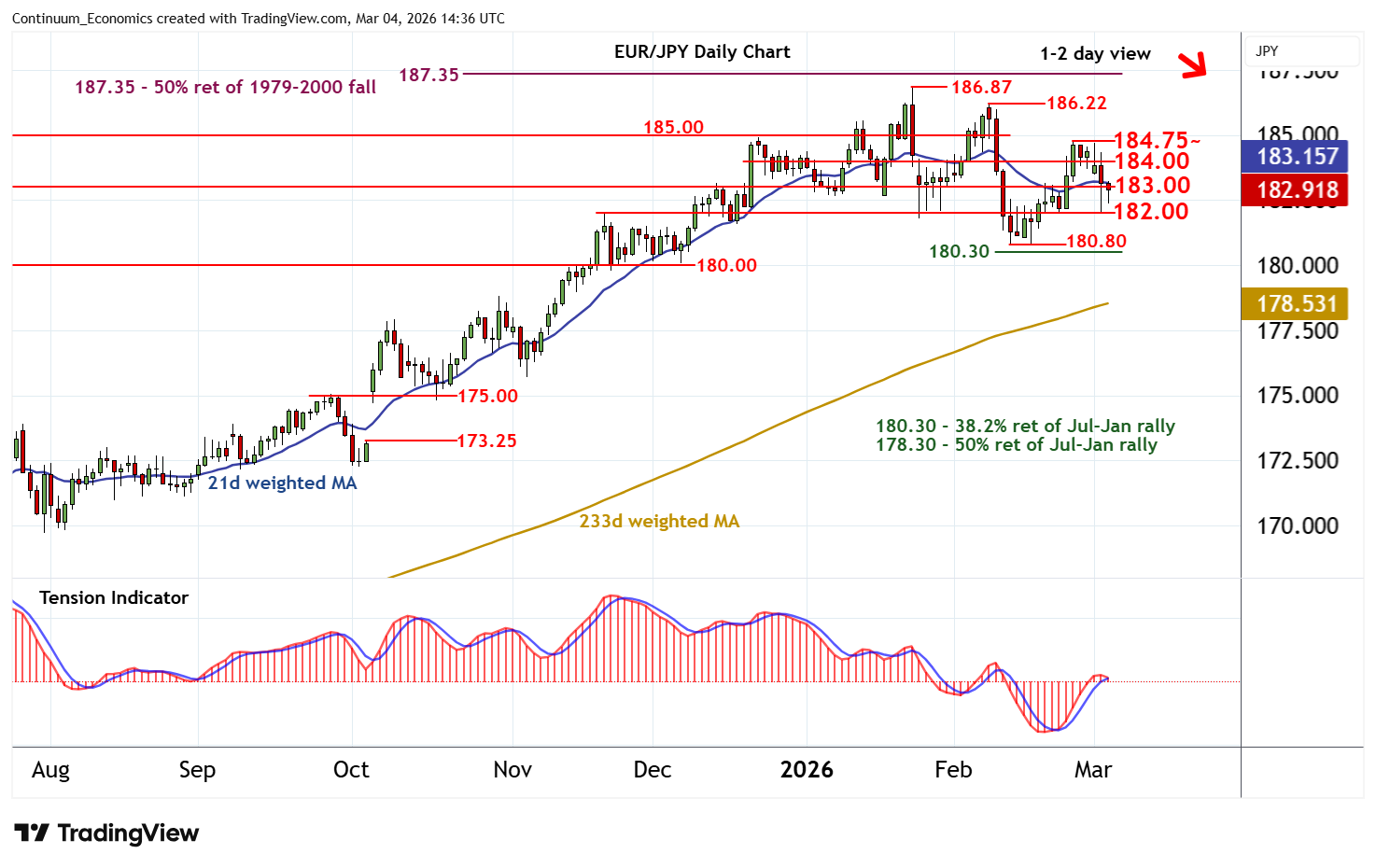 | R2 | 184.75~ | 25 Feb (w) high | S3 | 180.80/00 | ** | 12 Feb YTD low; cong | ||