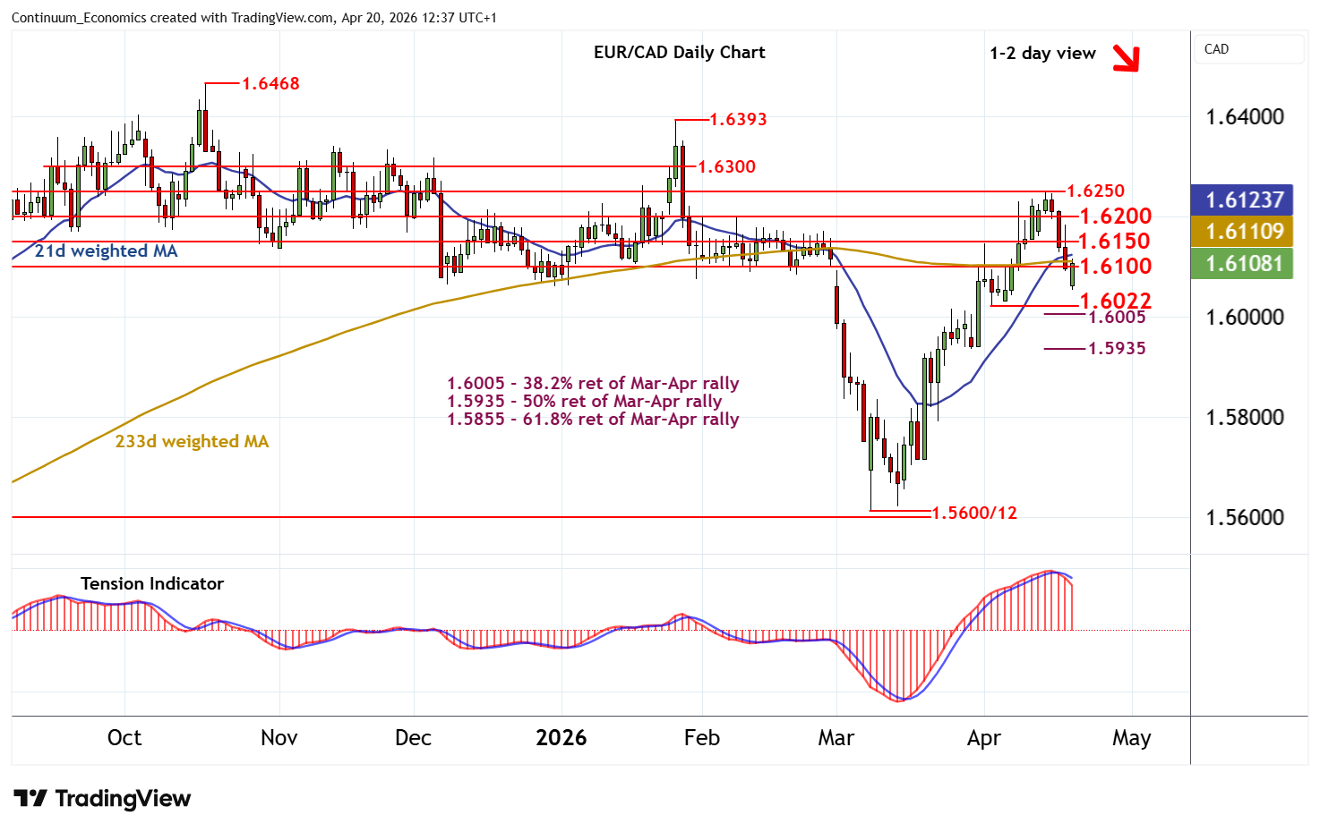 Chart EUR/CAD Update: Early losses not sustained - studies under pressure