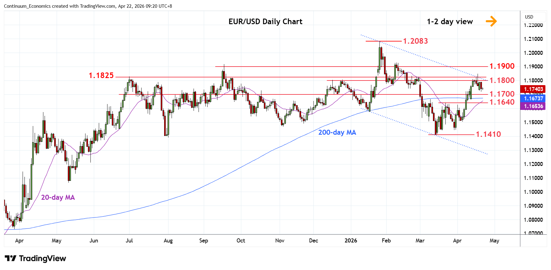 Chart EUR/USD Update: Leaning lower from 1.1800/25 resistance