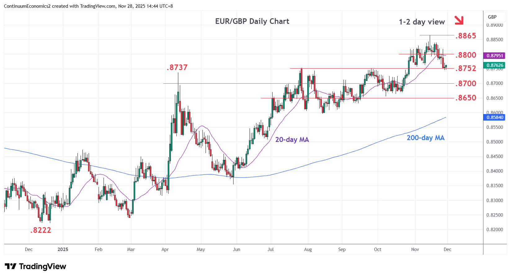 Chart EUR/GBP Update: Consolidating test of .8752/.8737 support