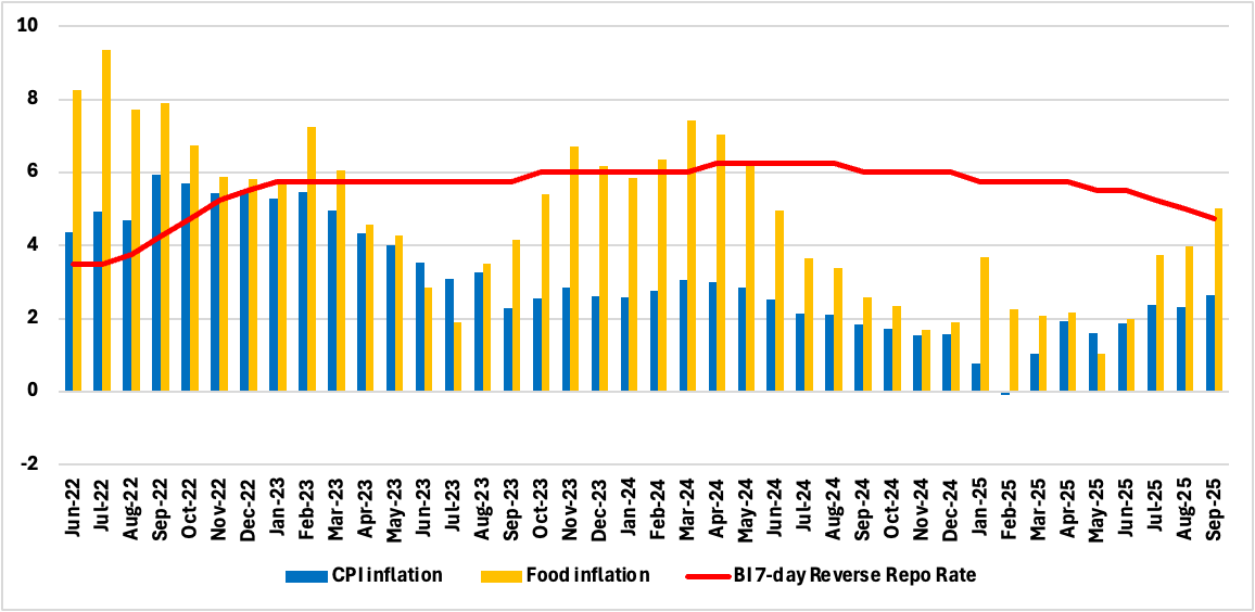 Figure 1: Indonesia CPI, Food Inflation and Main Policy Rate (%)