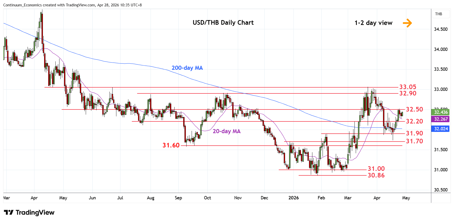 Chart USD/THB Update: Consolidating test of 32.50 resistance