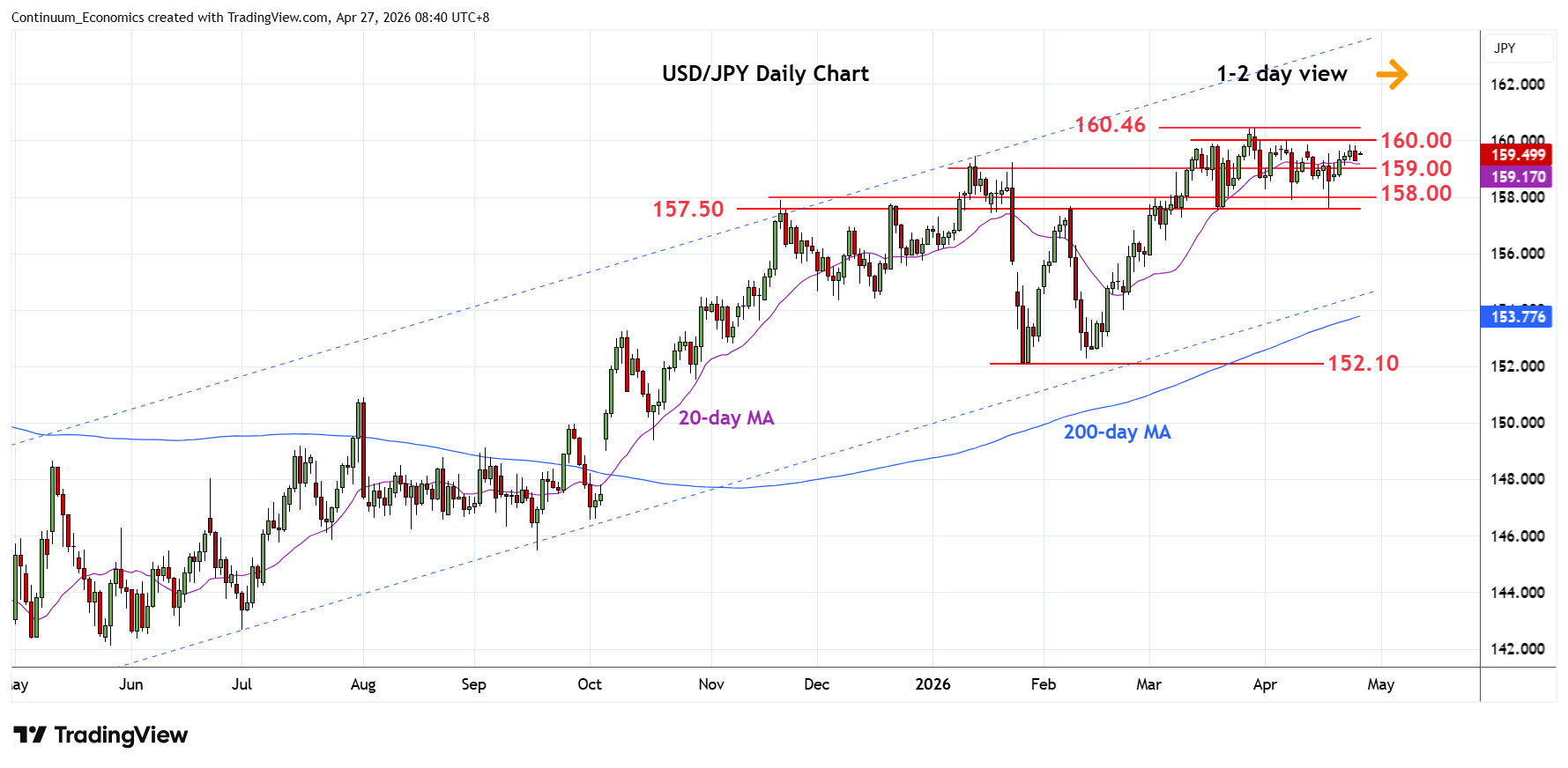 Chart USD/JPY Update: Drifting lower from 159.85/160.00 resistance