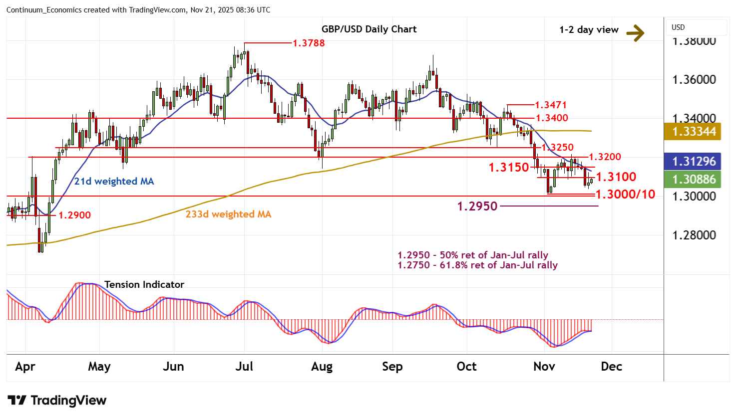 | R4 | 1.3400 | ** | break level | S1 | 1.3000/10 | * | cong; 4-5 Nov (w) lows | |