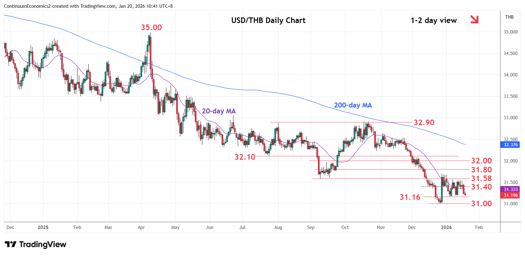 Chart USD/THB Update: Under pressure, 31.16 support at risk