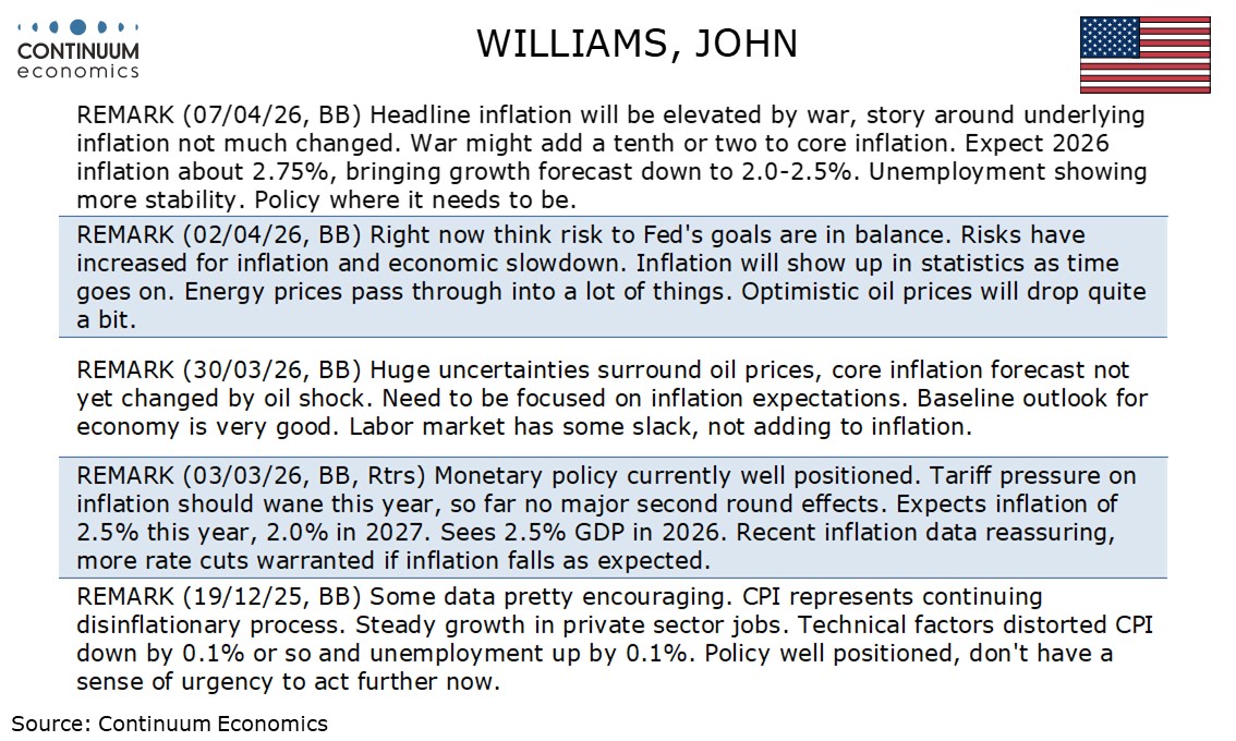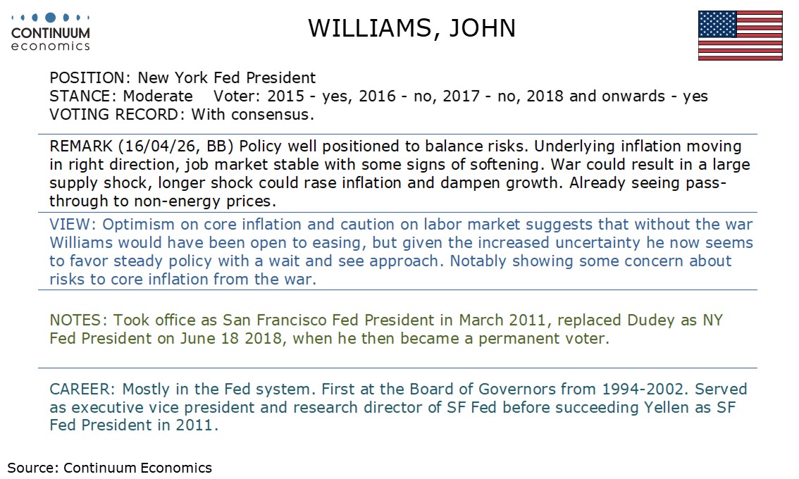 Fed's Williams is showing some concern over core inflationary risks from the war, and that will make him more reluctant to ease.