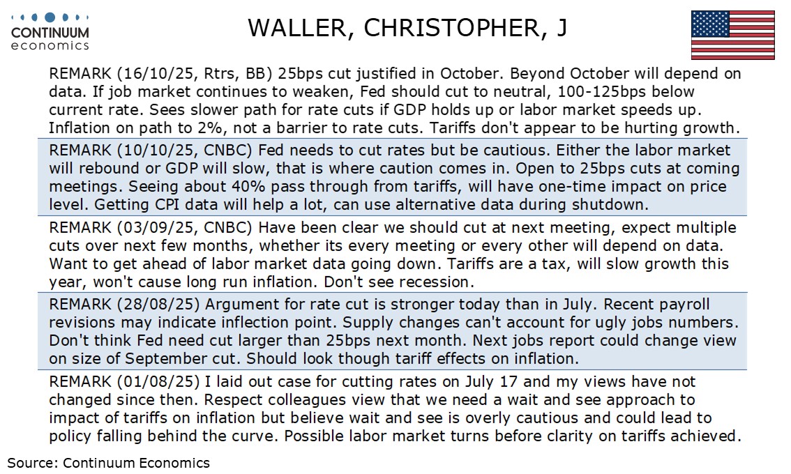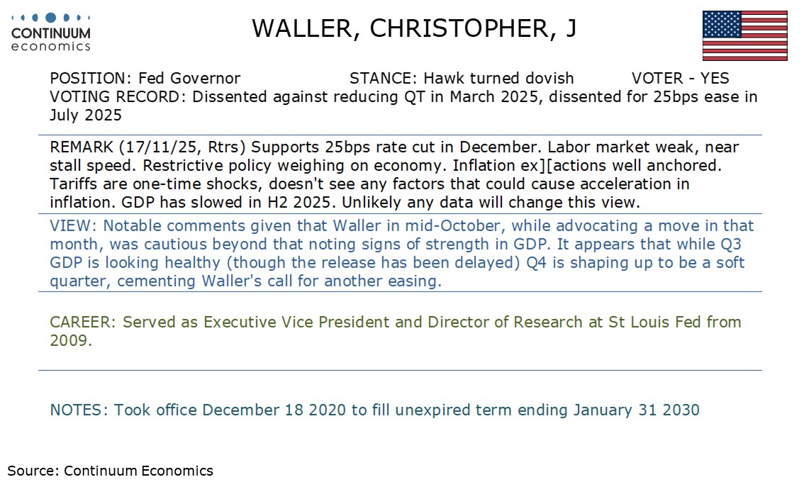 Fed's Waller latest comment is significant, given that in mid-October he was unconvinced of the need to ease beyond the move seen in late October.