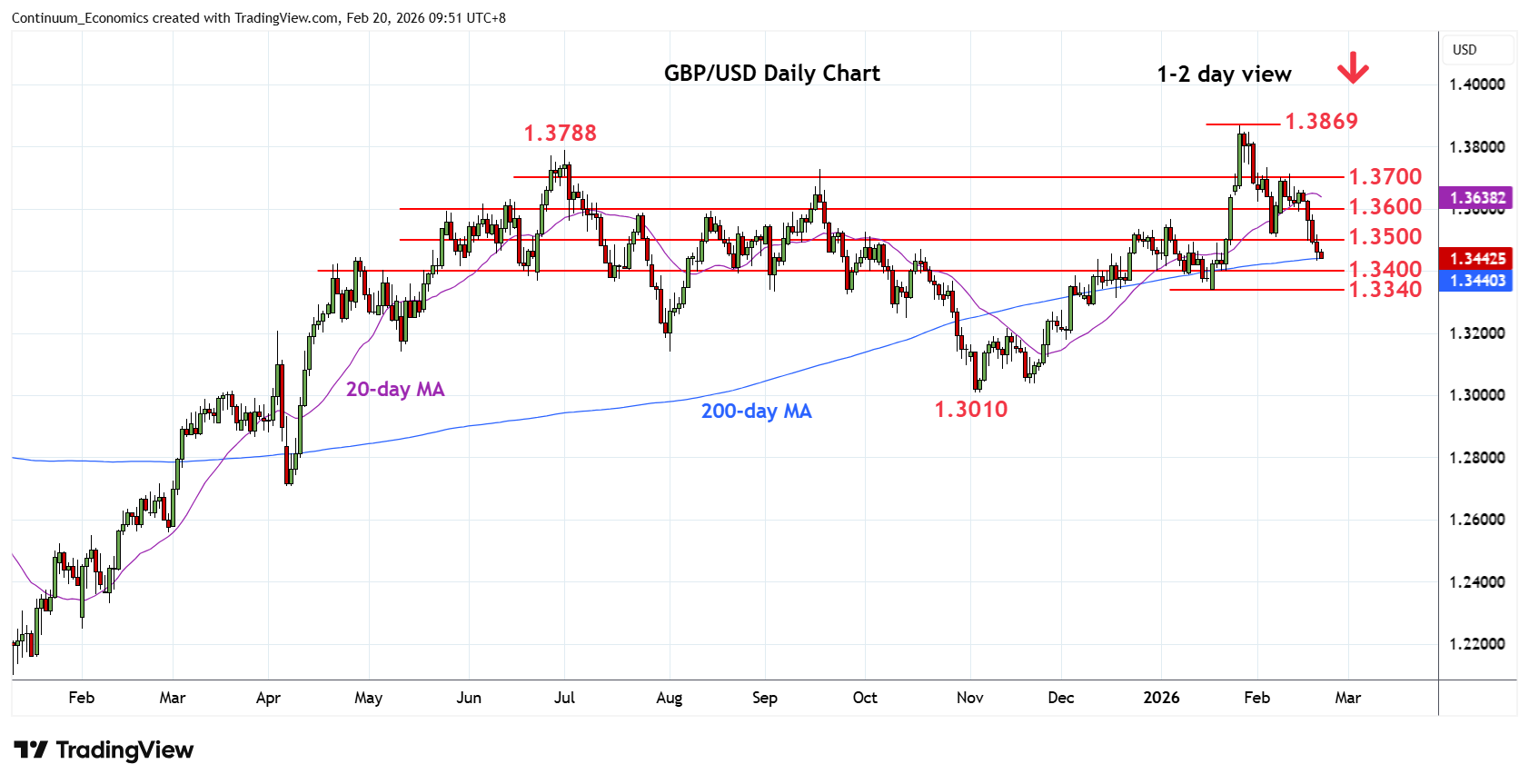 01:50 GMT - Break of the 1.3508/00 support see prices extending losses from the 1.3869 January current year high to reach 1.3440, 50% Fibonacci level and 200-day MA. However, pressure remains on the downside and break here cannot be ruled out. Lower will see room for extension to the 1.3400 congestion then the 1.3340, 19 January YTD low and 61.8% Fibonacci level. Meanwhile, resistance is lowered to the 1.3500/08 congestion and 6 February low which is expected to cap. Regaining this is needed fade the downside pressure and open up room for retest of resistance at 1.3568 and 1.3600 congestion.