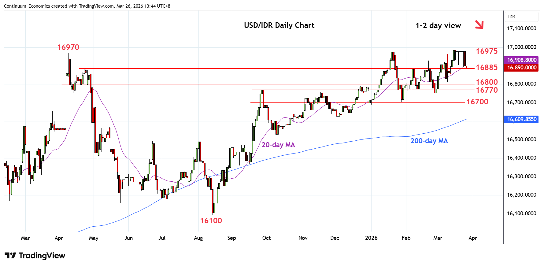 Chart USD/IDR Updates: Weighing on 16900/16885 support