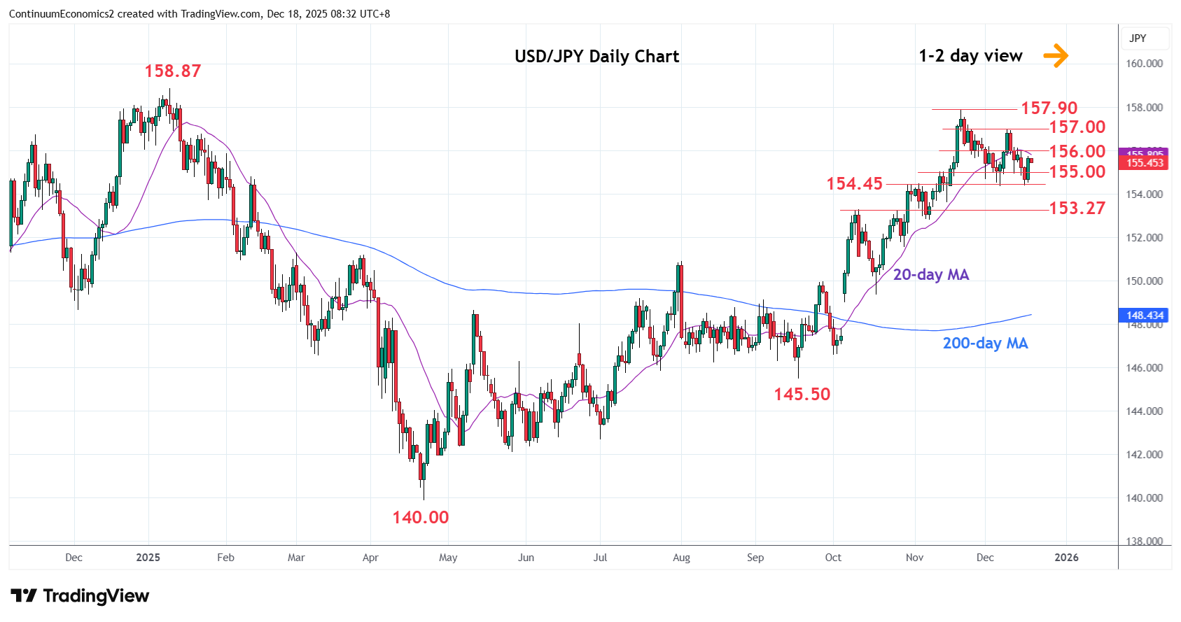 Chart USD/JPY Update: Turned up in consolidation at 154.45 support