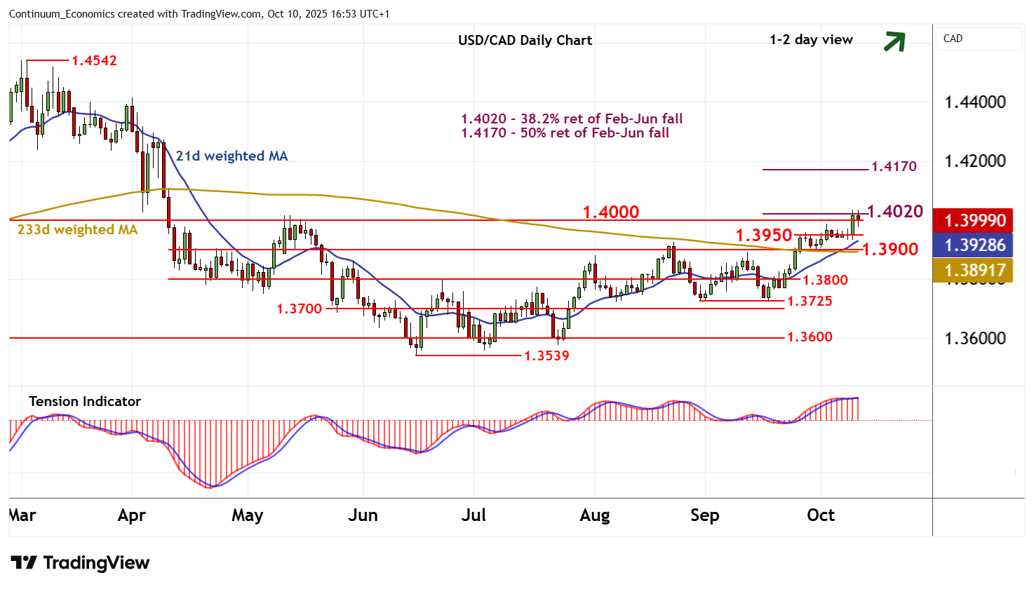 Chart USD/CAD Update: Consolidating test of 1.4000/20 - background studies rising