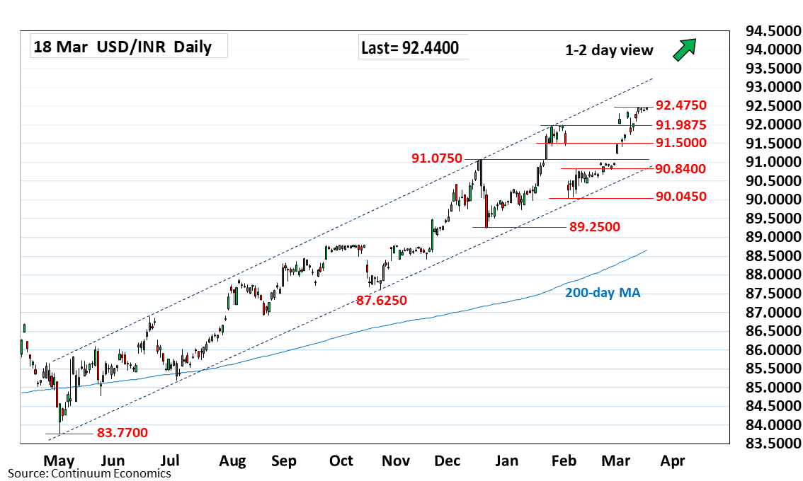 Chart USD/INR Update: Extend consolidation below 92.4750 historic high