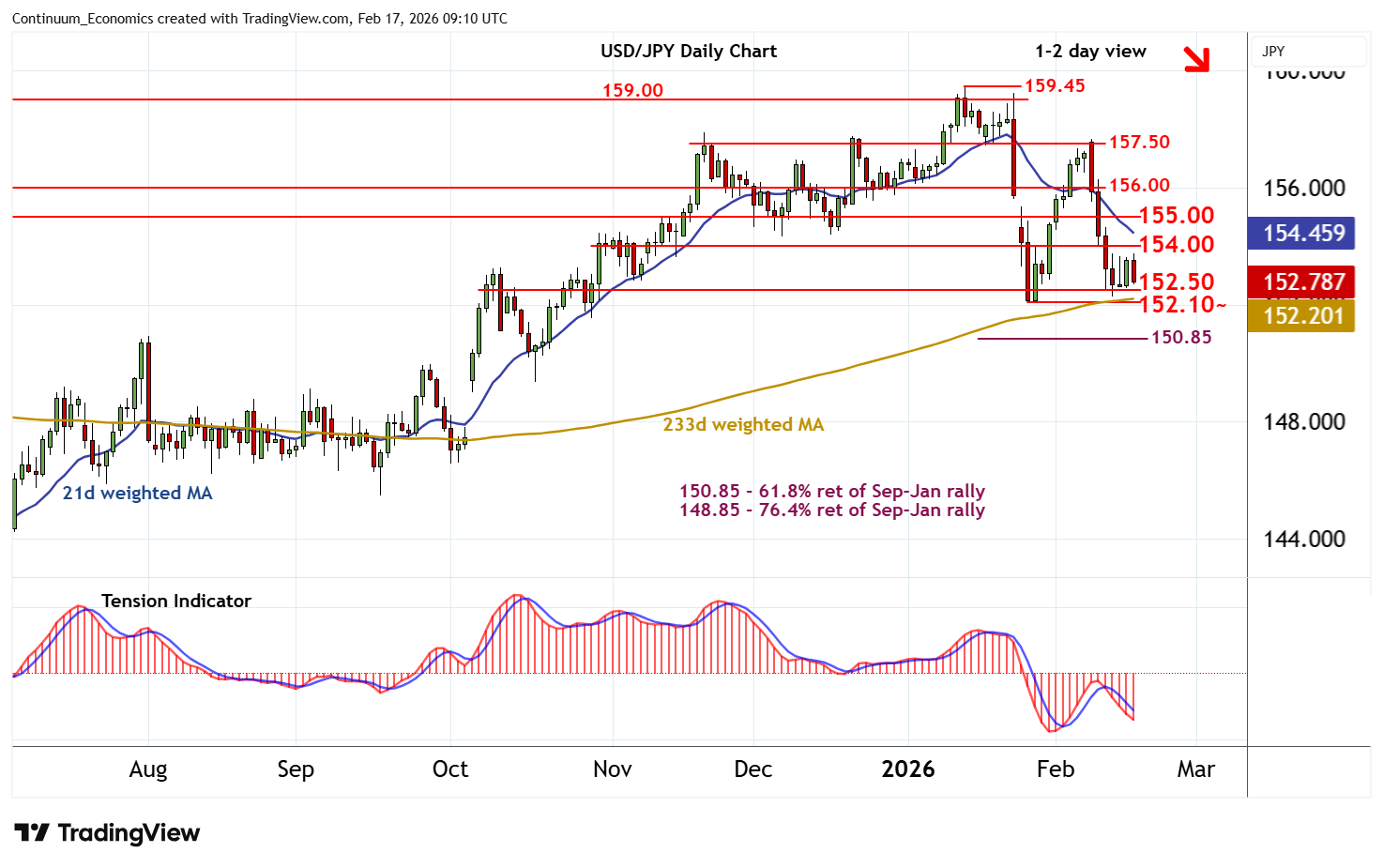 | R3 | 156.00 | * | congestion | S2 | 152.10~ | ** | 27 Jan YTD low | |