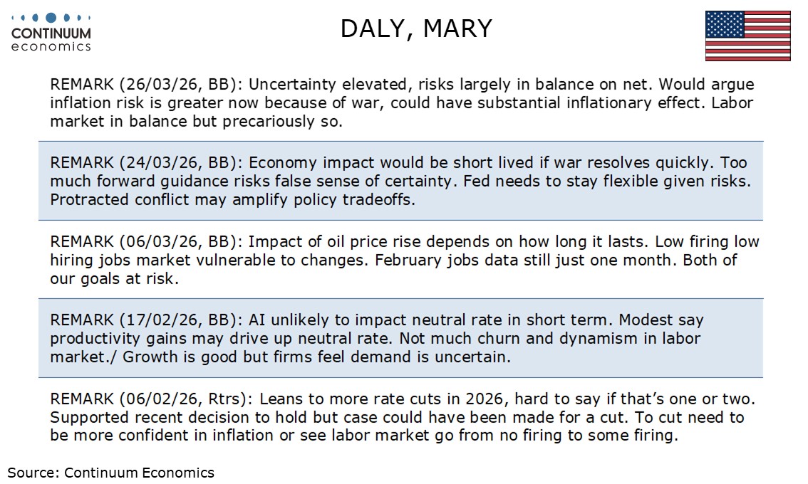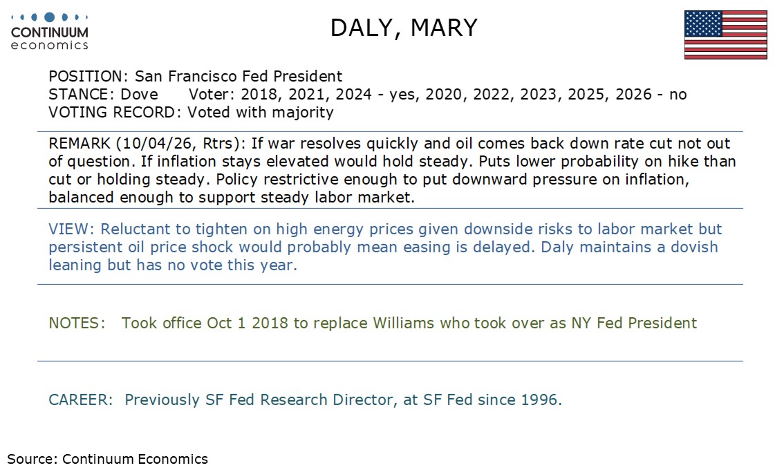 Fed's Daly is reluctant to hike rates but will be cautious about easing if the oil shock is persistent.