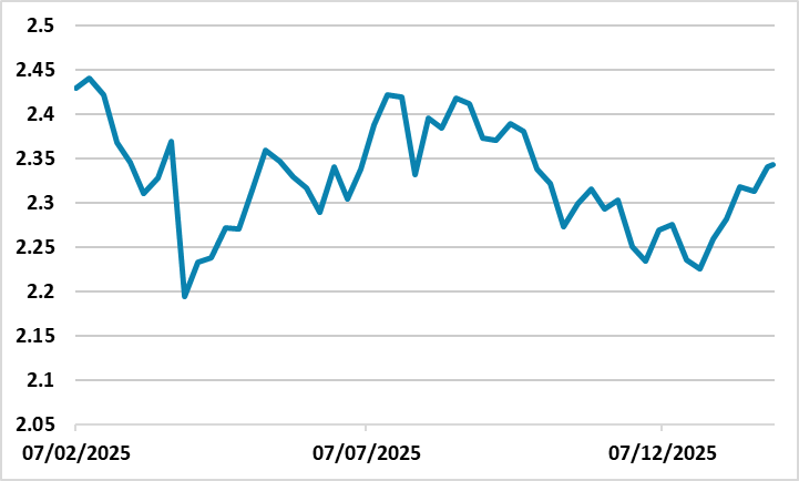 • Trump’s problems. Iran is currently in the spotlight, with Trump armada but threats of military actions cooling over the weekend with reports of high level talks. The risk of a spike in oil and gasoline prices is too great even for a caviler Trump and we feel that pressure will continue and produce a deal. We also feel that though Greenland will be threatened again by Trump, but will stop tensions short of a blockade or invasion (here) and a negotiated solution will be seen. However, the Trump administration’s hyperactive start to 2026 is unlikely to achieve success on the number one issue for voters in the shape of cost of living concerns. Trump can either control himself or distract by causing problems elsewhere. ICE’s soften of immigration tactics in Minnesota show a more cautious Trump but he loves to shift the media focus by distracting on other issues. For financial markets, the biggest potential issue is the Supreme court ruling on reciprocal tariffs, with our baseline being a partial or full rejection. The Trump administration will likely threat 122 and 301 tariffs (here), which can create trade policy and financial market uncertainty. This is a potential adverse equity market catalyst if handled badly by the Trump administration.