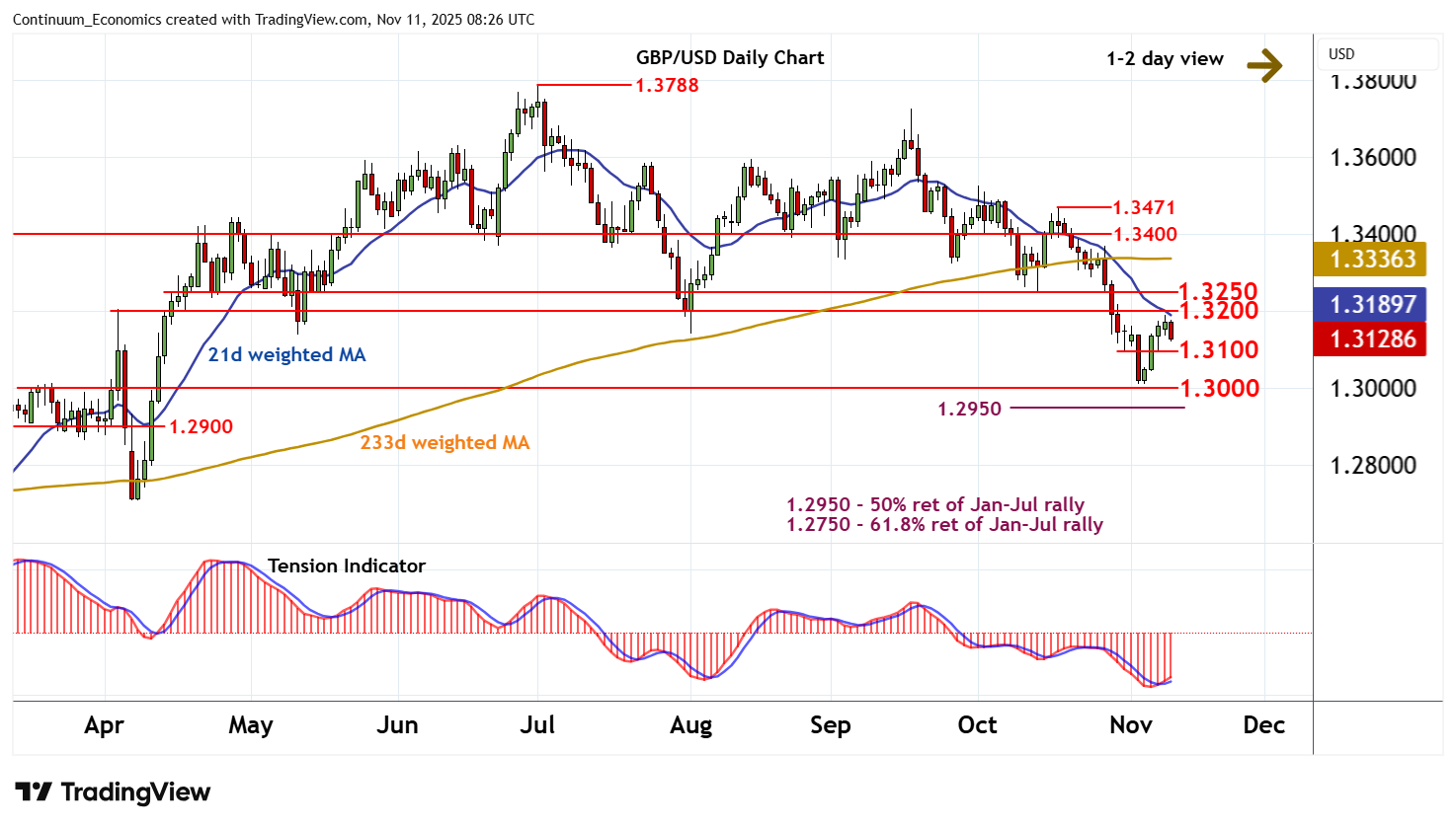 08:10 GMT - Anticipated minor gains have met selling interest beneath congestion resistance at 1.3200, as overbought intraday studies unwind, with prices currently trading around 1.3125. Immediate focus is on support at the 1.3100 break level. But rising daily readings are expected to limit any initial tests in consolidation, before negative weekly charts prompt a break. A close beneath here will add weight to sentiment and give way to a break down to stronger support at 1.3000. Meanwhile, a break above 1.3200, if seen, should be limited in renewed selling interest beneath further congestion around 1.3250.