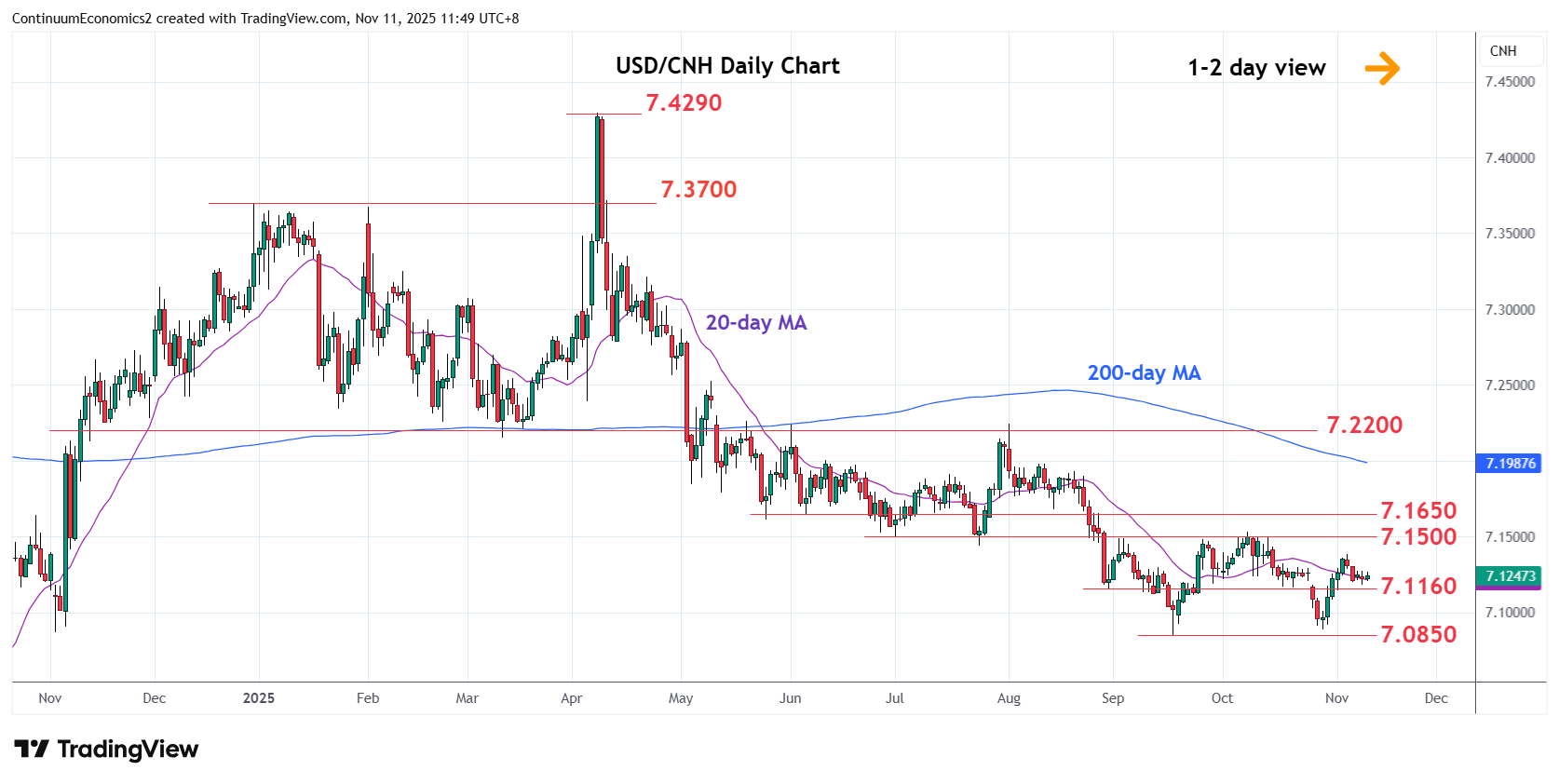 Chart USD/CNH Update: Drifting narrowly above 7.1160 support