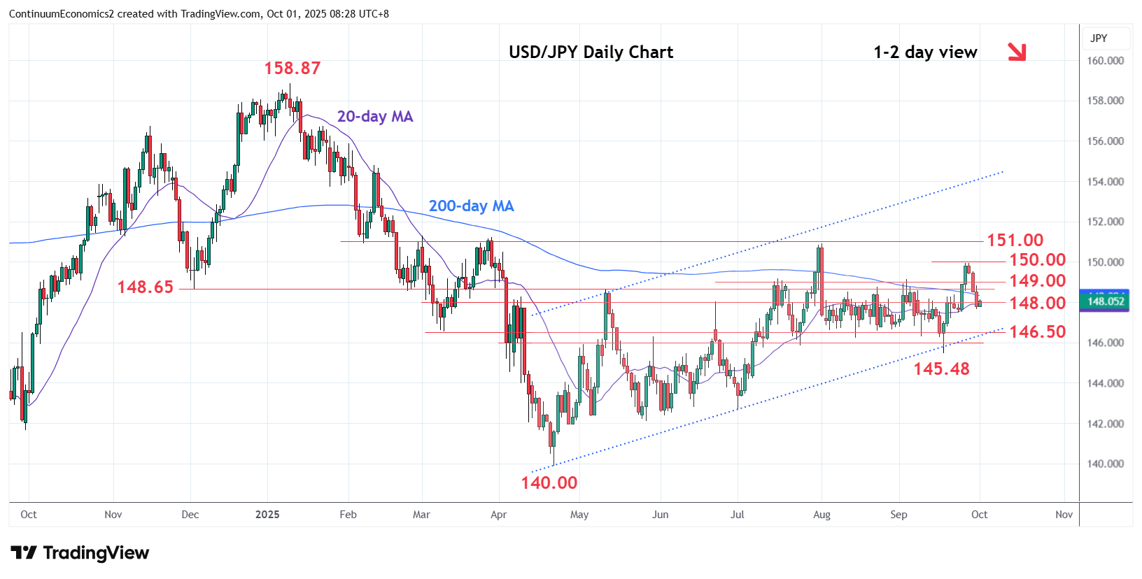 Chart USD/JPY Update: Consolidating at 148.00, lower later