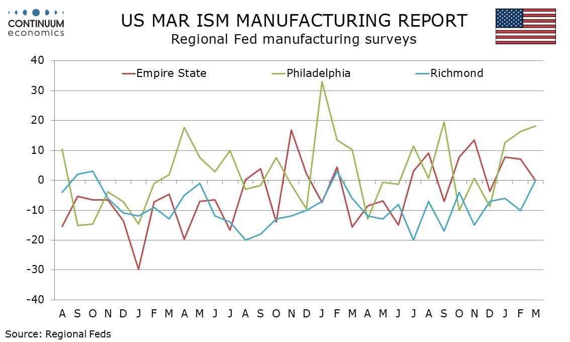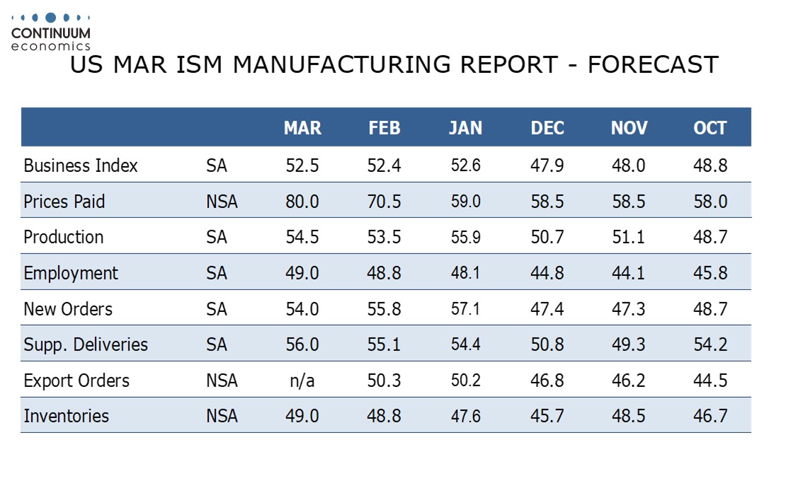 Preview: Due April 1 - U.S. March ISM Manufacturing - Sustaining recent improvement