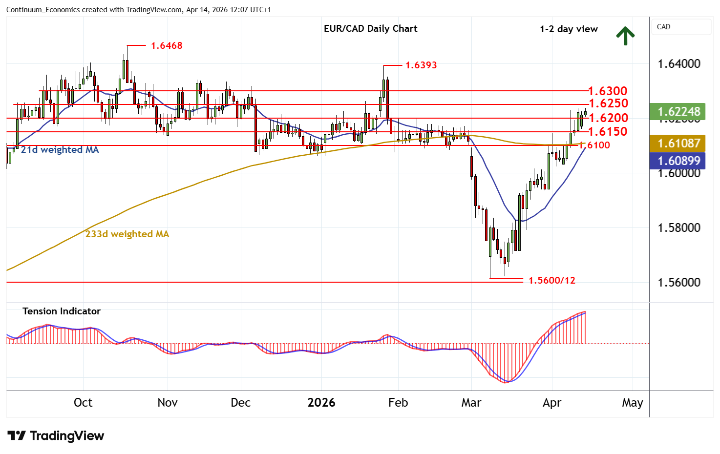 11:30 BST - Cautious trade has given way to a fresh push higher, with the break above 1.6200 currently balanced around 1.6225. Both daily and weekly studies are positive, highlighting room for further strength in the coming sessions towards congestion resistance at 1.6250. Continuation towards 1.6300 cannot be ruled out. Meanwhile, support is raised to congestion around 1.6200. A close beneath here, if seen, would help to stabilise sentiment and prompt consolidation above further congestion around 1.6150.