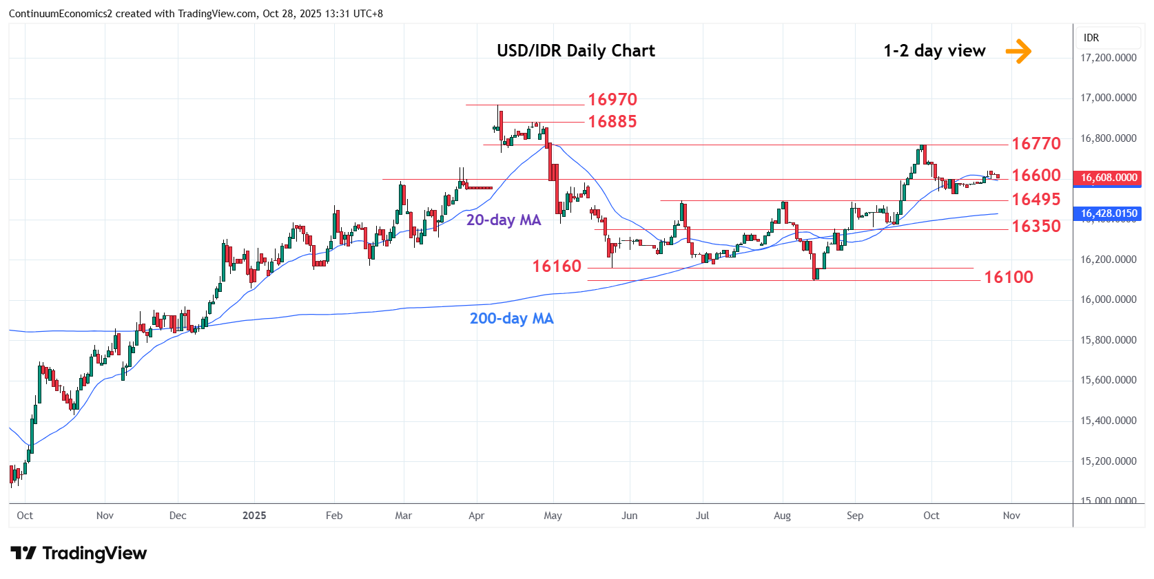 05:35 GMT - Settling back from gains to 16640 corrective high as prices unwind overbought daily and weekly studies. Pullback see support starting at the 16600 congestion and below this will see room for pullback to the 16525 low. A later break here will open up room for deeper pullback to retrace the August/September rally to strong support at the 16495, June-August range highs. Lower still will see room to 16355/16350 area. Meanwhile, resistance at the 16640 high now expected to cap and contain corrective bounce.