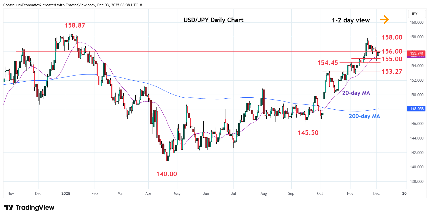 | R3 | 157.90/00 | ** | 20 Nov high, congestion | S2 | 154.45 | ** | 30 Oct high | |