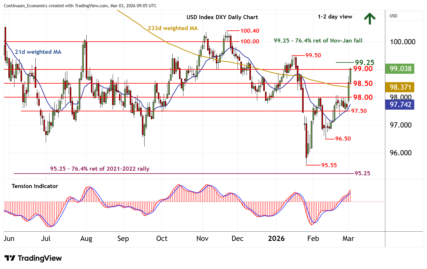 | R3 | 99.50 | ** | 15 Jan YTD high, cong | S2 | 98.00 | * | congestion | |