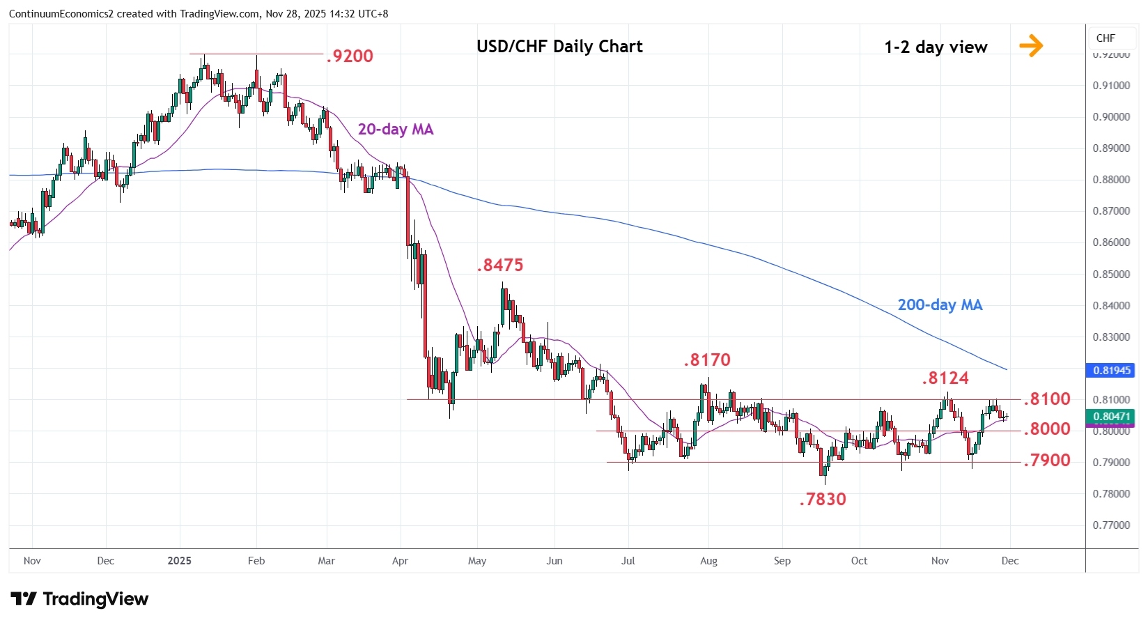 Chart USD/CHF Update: Lower in consolidation from test of .8100 level