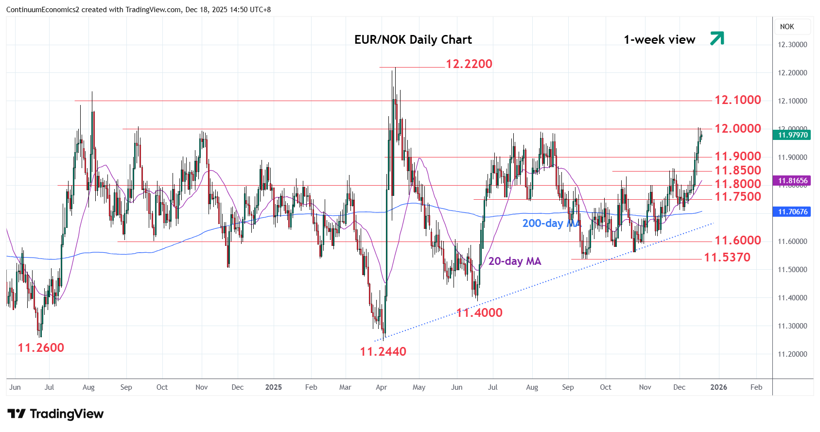 Bullish break of resistance at the 11.8000 level and 11.8500 November highs last week has seen rally to retest resistance at the 12.0000 figure