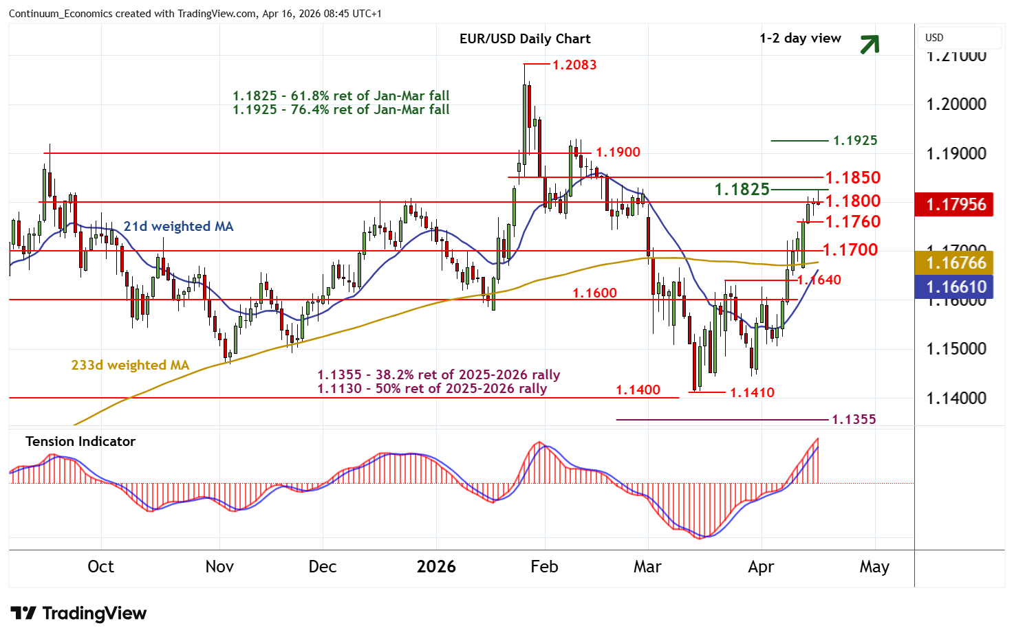 | R2 | 1.1825 | ** | 61.8% ret of Jan-Mar fall | S3 | 1.1640 | ** | 23 Mar (w) high | |
