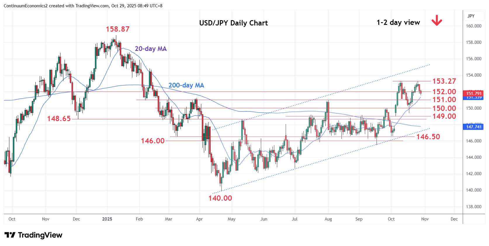 | R1 | 152.56 | 27 Oct low | S4 | 149.37 | ** | 17 Oct low |