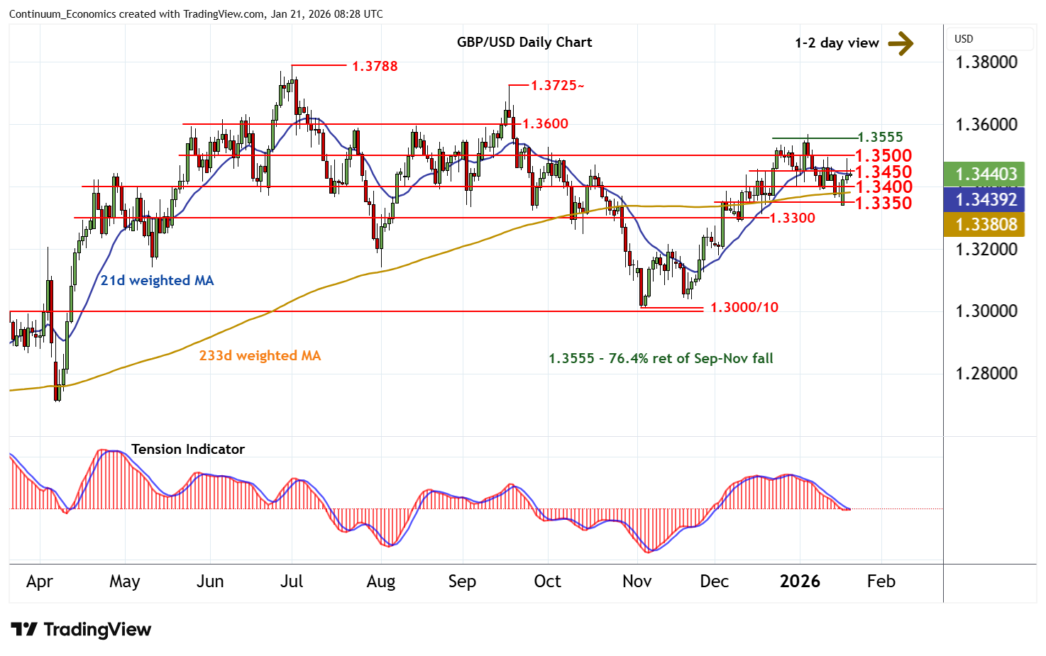 Little change, as prices extend consolidation beneath congestion around 1.3450