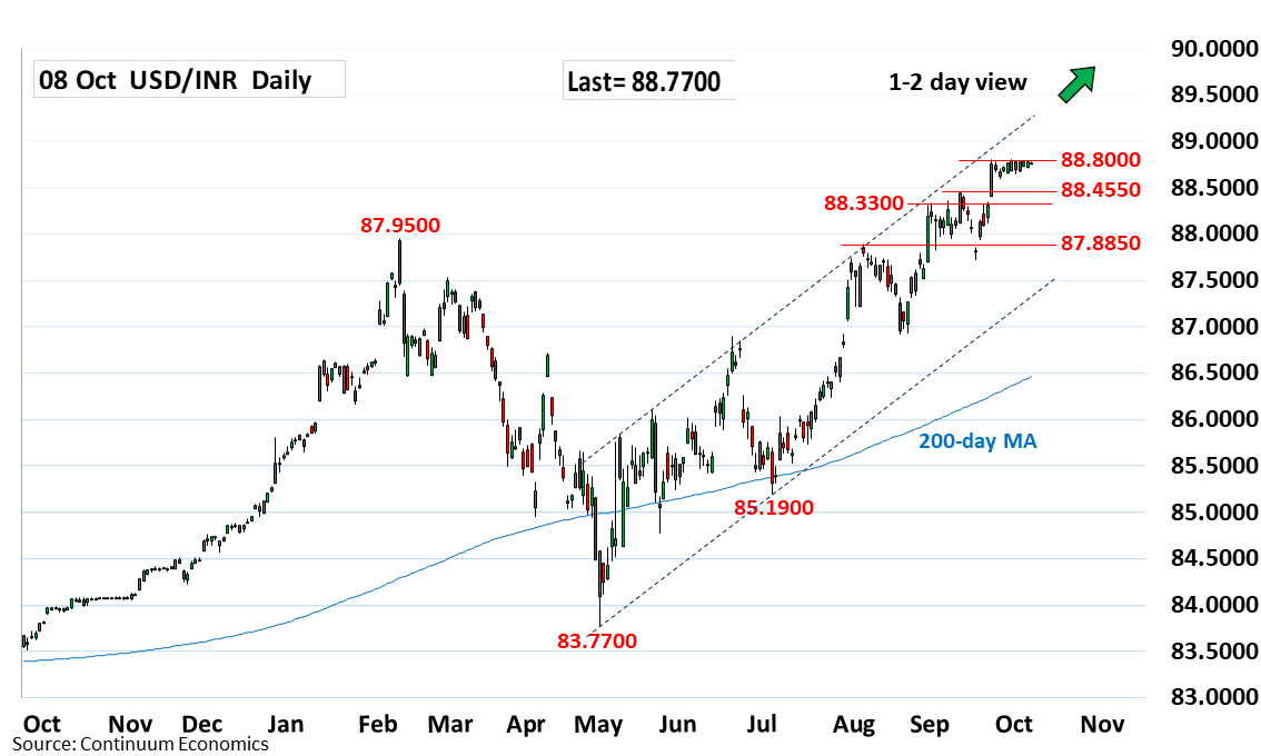 Chart USD/INR Update: Still pressuring the 88.8000, all-time high