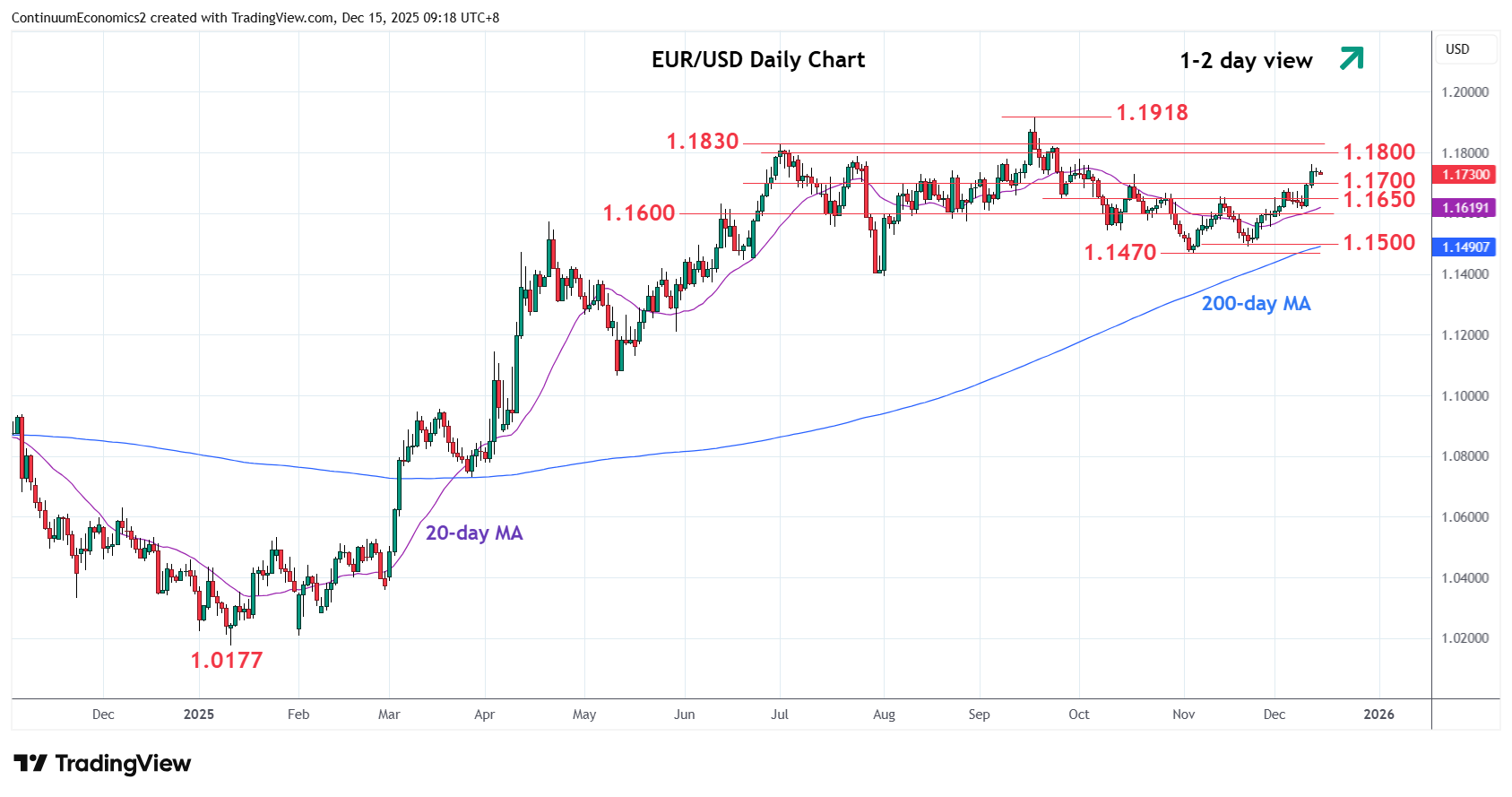01:30 GMT - Settled into consolidation from the 1.1763 high as prices unwind overbought intraday studies. Positive daily and weekly studies suggest scope for further gains later. Higher will see room for extension to strong resistance at the 1.1800/30, congestion and July high. Clearance here will return focus to the 1.1918, September current year high. Meanwhile, support is raised to the 1.1700/1.1682 area which extend to strong support at 1.1650 congestion. This area should underpin and sustain bullish gains from the 1.1470, November low.