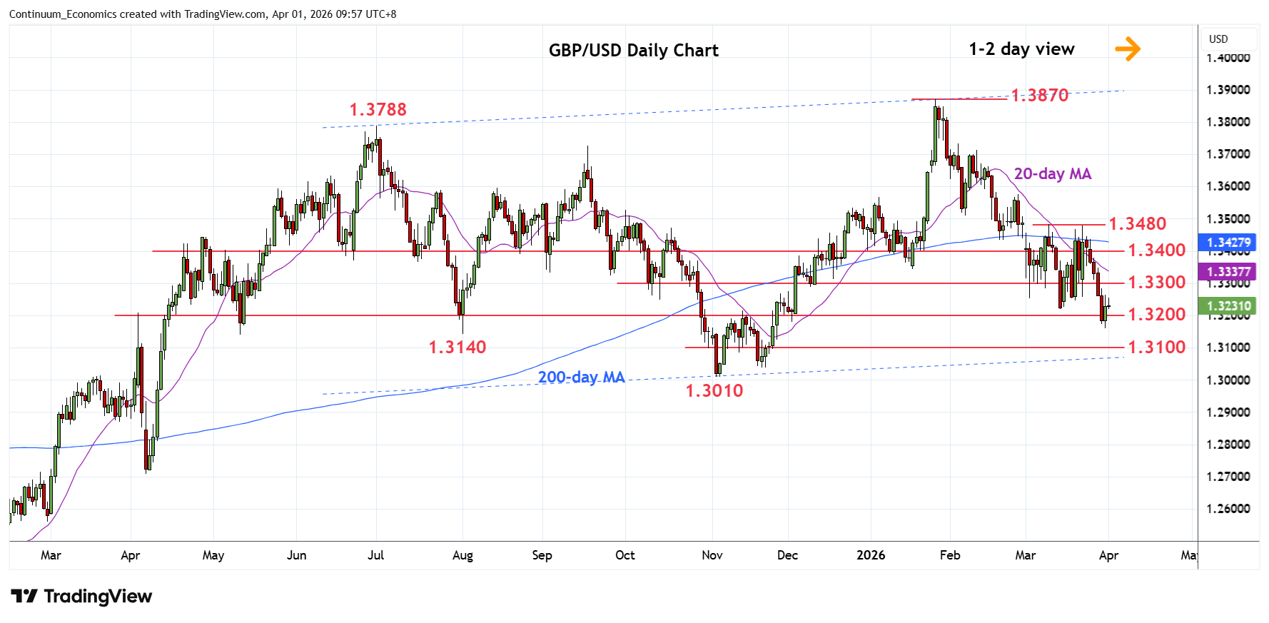 Chart GBP/USD Update: Consolidating at 1.3160, fresh year low