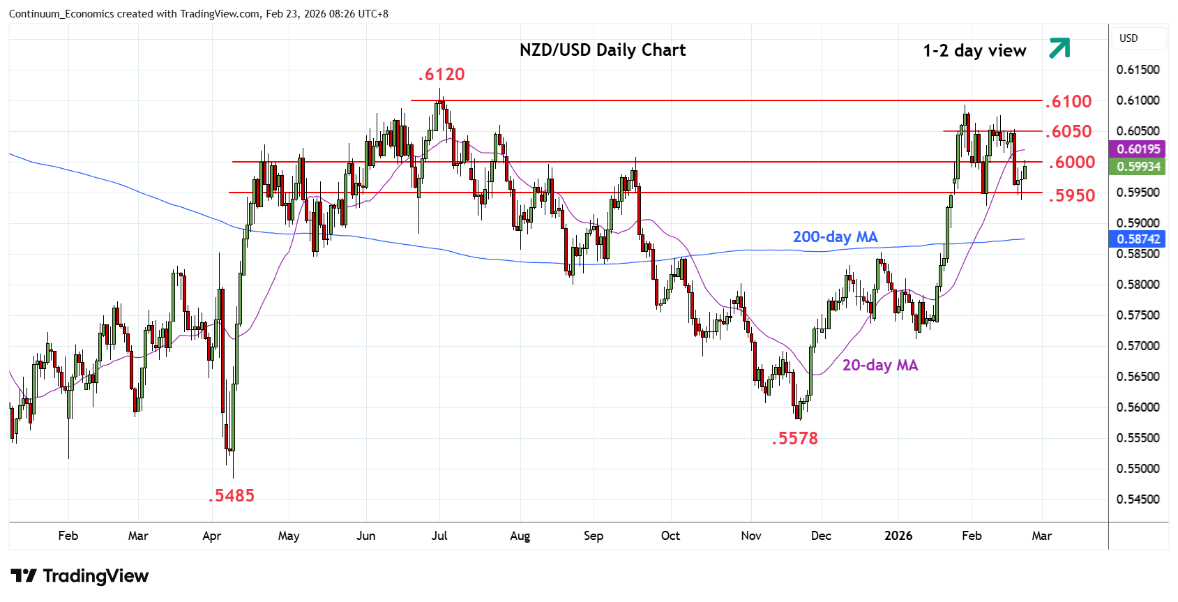 Chart NZD/USD Update: Extend choppy trade above .5950 support
