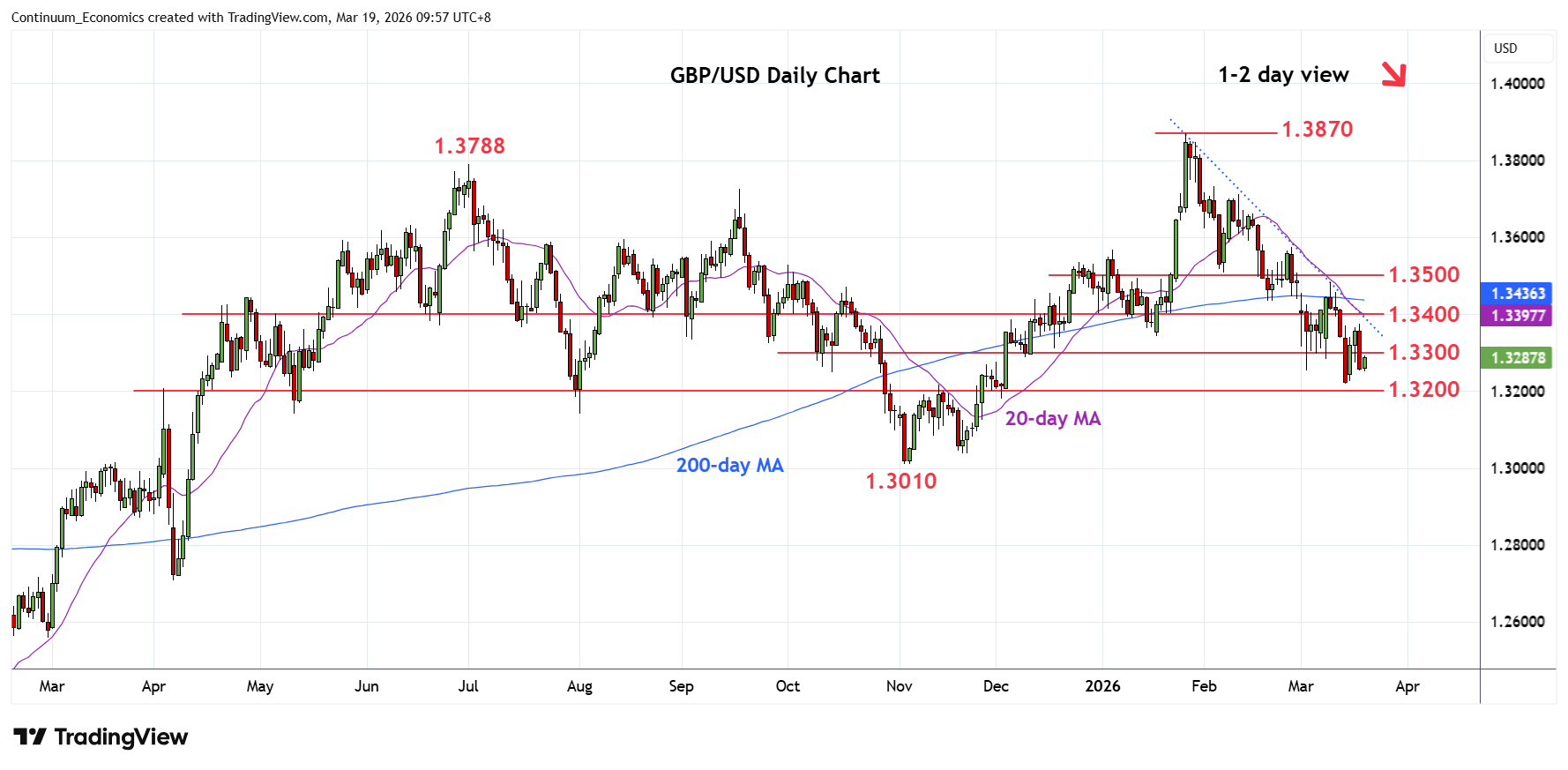 Chart GBP/USD Update: Under pressure, focus return to 1.3213 low