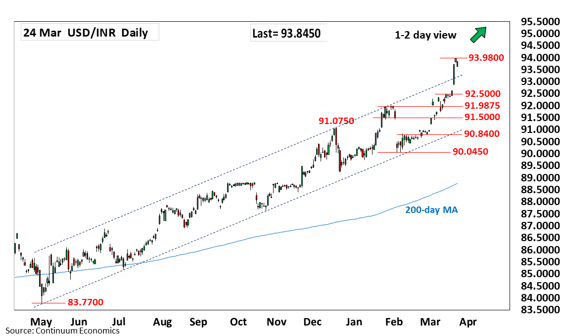 Chart USD/INR Update: Consolidating below 93.9800 all-time high