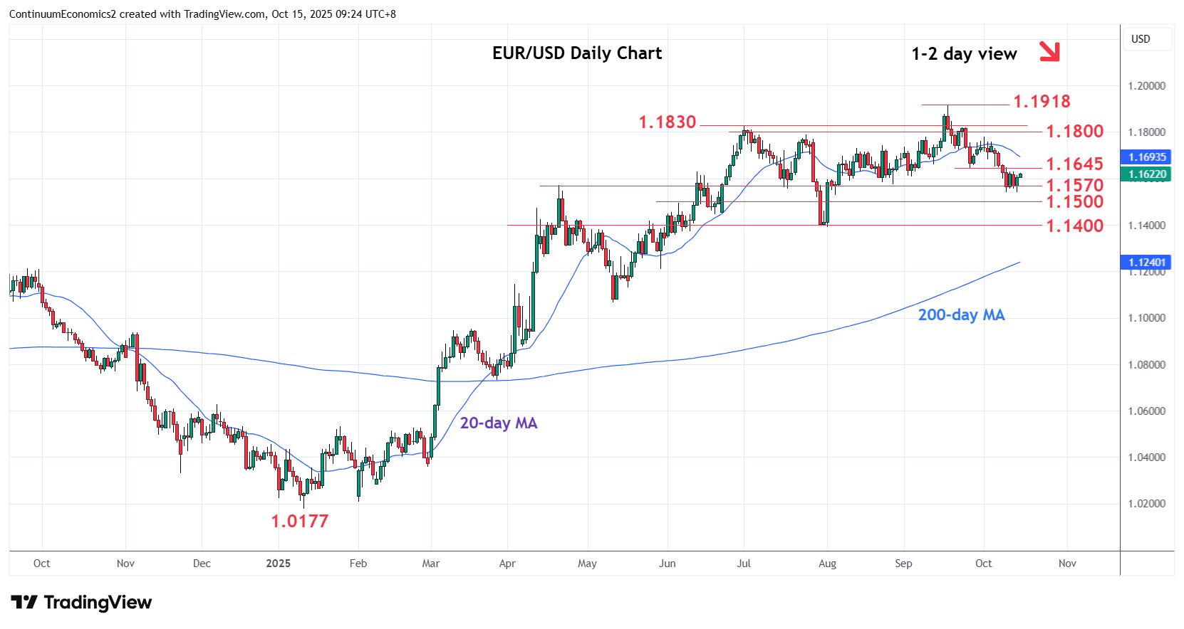 Little change, as prices extend consolidation around the 1.1600 level following bounce from 1.1542 low last week