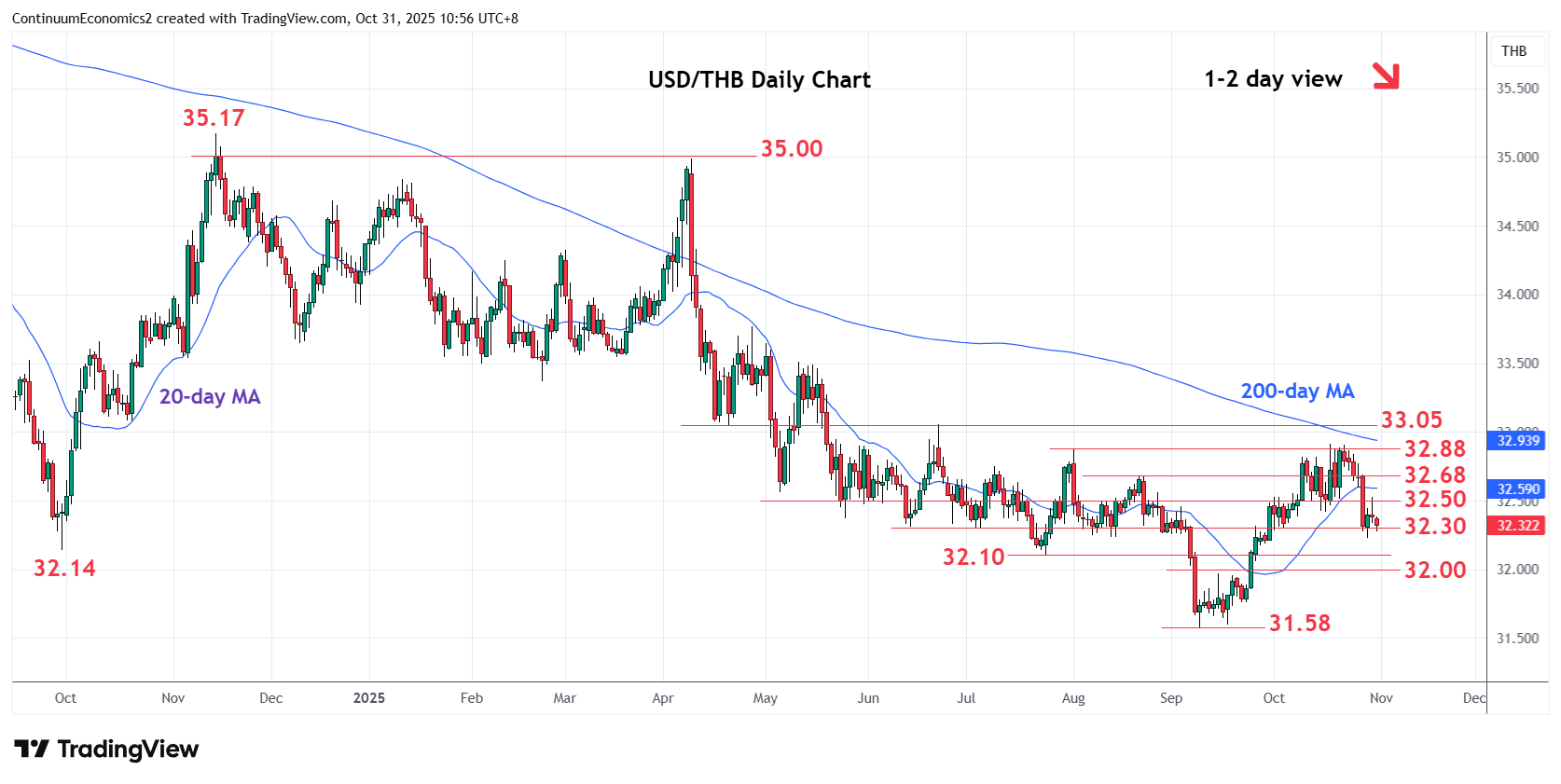 Chart USD/THB Update: Consolidating test of 32.30 support, room for lower