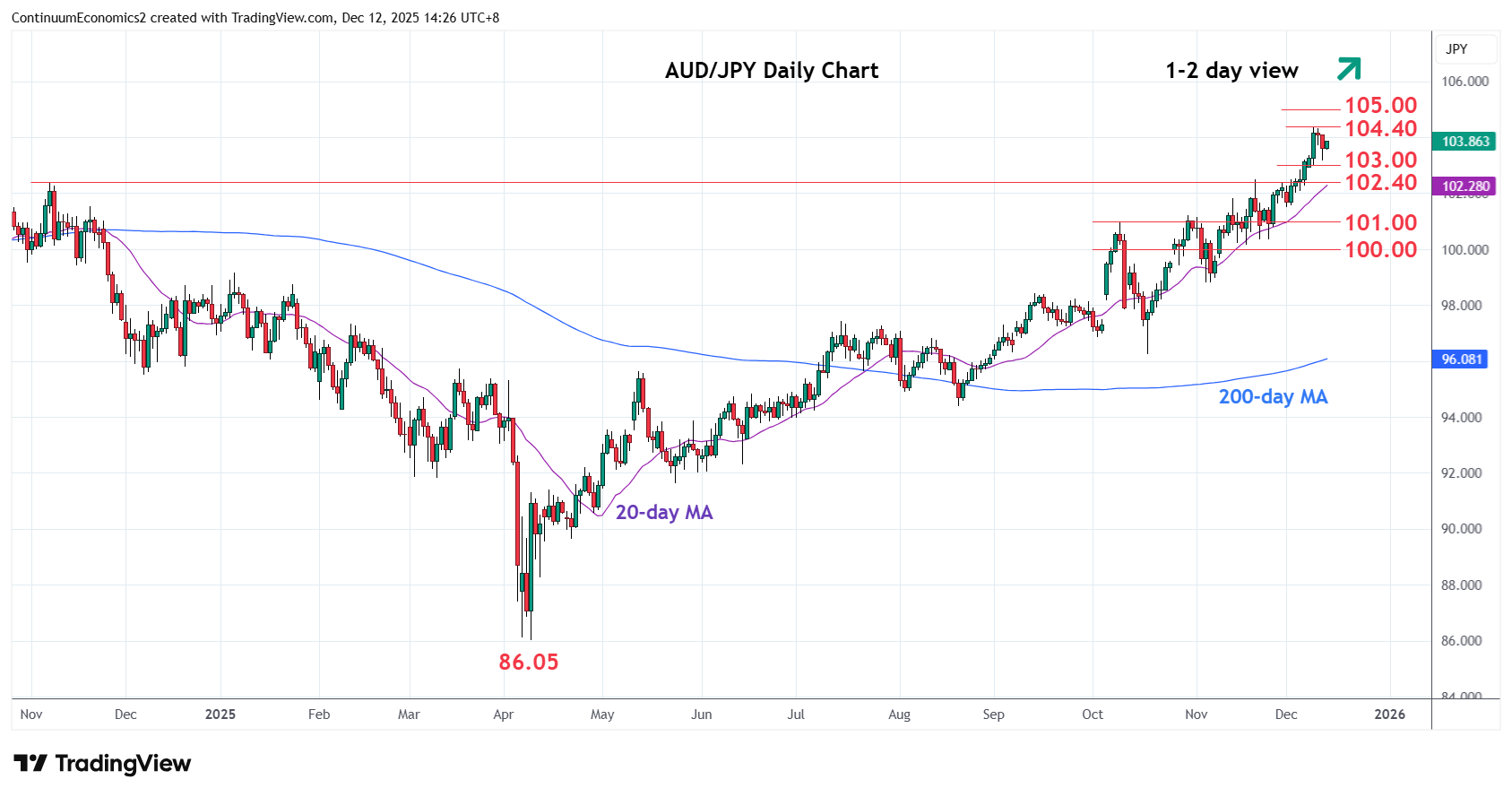 Chart AUD/JPY Update: Range-bound in consolidation from 104.40 high