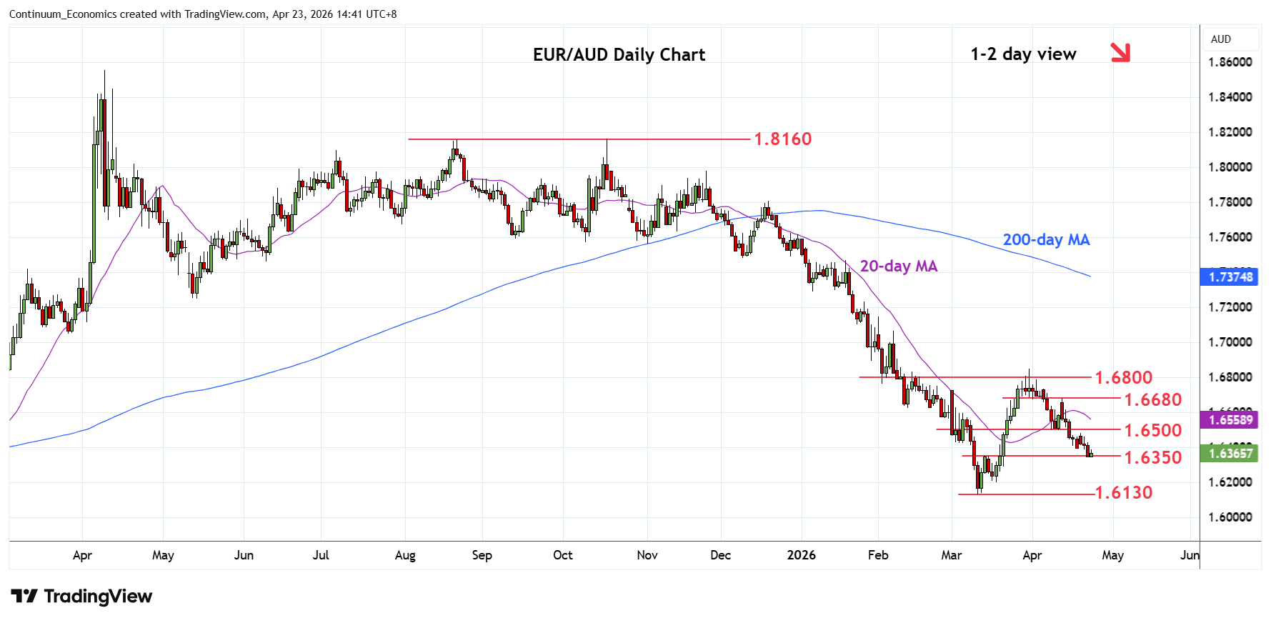 Chart EUR/AUD Update: Weighing on the 1.6350 support
